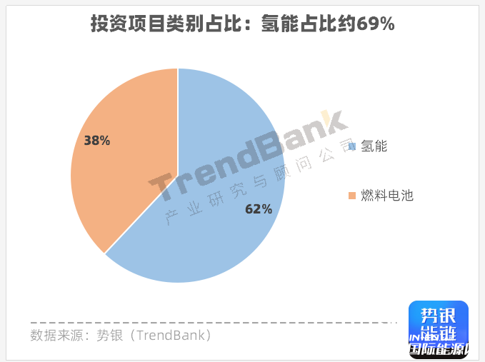 投资项目类型:氢能占比最高,约62%