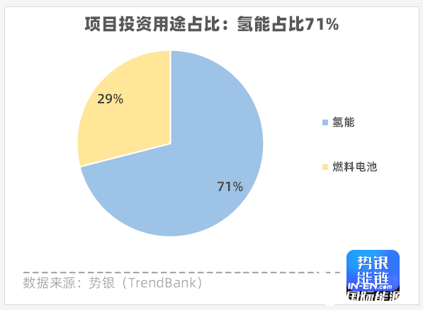 从项目金额占比来看,氢能项目总金额达633.7亿,占总投资金额约71%;燃料电池项目总金额达262.69亿,占总投资金额约29%。