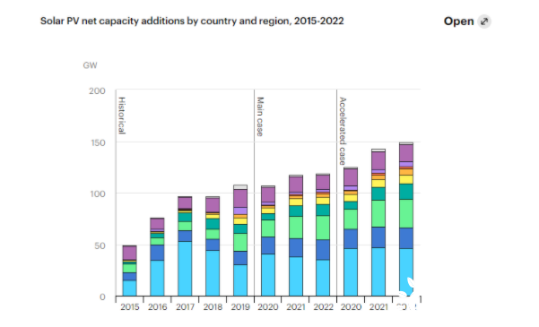 根据IEA的数据显示,虽然起步较晚,中国的太阳能发电装机量近年来发展迅速,光伏发电量快速增长。从过去的十年里,从上游的硅片、组件、光伏电站,到下游的锂电、储能、电动车、社区储能站,中国的光伏发展一往无前。