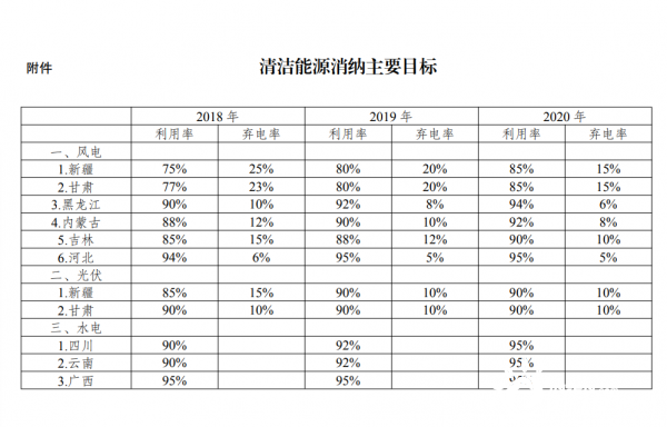 在此背景下,国家发展改革委、国家能源局联合印发《清洁能源消纳行动计划(2018-2020年)》,定下了2020年平均风电、光伏发电、水能利用率95%的目标。