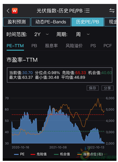 现如今,光伏“主线”企业,根据明年的业绩预测,市盈率普遍在15倍-30倍。而在最近两年,Wind光伏行业指数的平均滚动市盈率(TTM)为46.89倍,目前的估值水平接近两年内最低分位点。