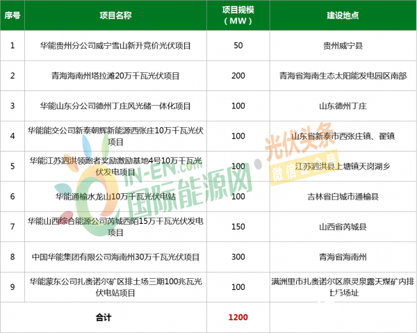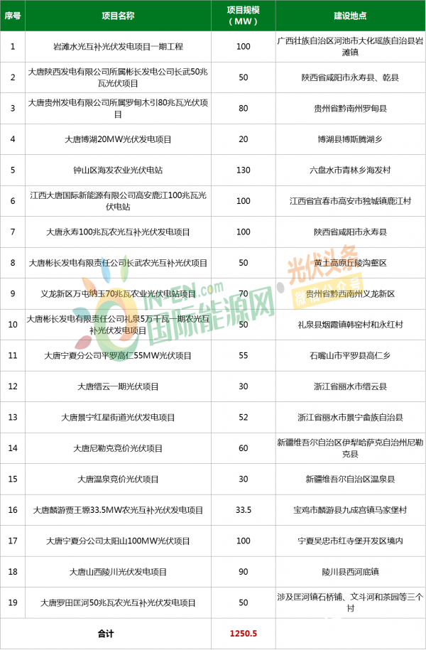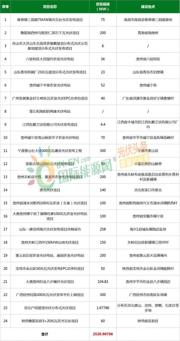 具体项目信息如下,(以下内容为光伏头条手动统计,不足之处欢迎更正、补充)