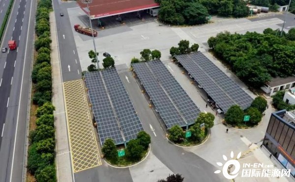 △G50沪渝高速公路长兴服务区光伏发电停车棚,既为过往车辆遮阳挡雨,又为服务区提供绿色能源