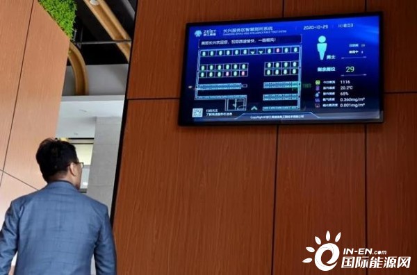 △智能厕所进出口显示屏上,厕位智能显示、空气环境实时监测一目了然