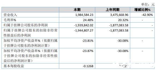 4月21日,ST汉能碳(831646)近日发布2020年度报告,报告期内公司实现营业收入1,984,584.23元,同比下滑42.90%;归属于挂牌公司股东的净利润-1,939,842.02元,较上年同期亏损增加。