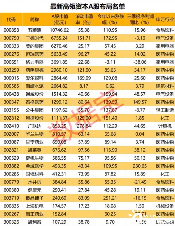 高瓴资本A股布局全名单出炉