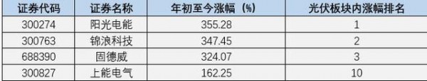 从资本市场来看,光伏设备指数年内热度较高,年初至今涨幅达到122.05%,在申万三级分类指数中排名第二。值得注意的是,在光伏板块中与龙头组件、光伏辅材厂商相比,光伏逆变器主要厂商近期的关注度相对较低,但其年内涨幅却在板块内遥遥领先,具体情况如下: