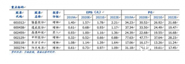 建议关注:光伏全产业链龙头:隆基股份、晶澳科技;光伏硅料和电池片龙头:通威股份;光伏和半导体硅片龙头:中环股份;光伏辅材龙头福莱特、福斯特;布局异质结领域的山煤国际、爱康科技、东方日升、迈为股份、捷佳伟创、金辰股份。