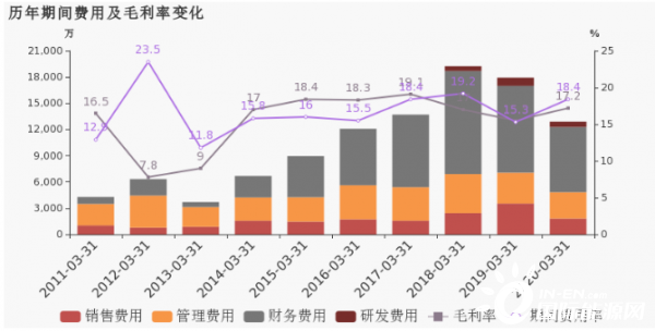 公司2020一季度营业成本5.8亿,同比下降41.6%,高于营业收入40.4%的下降速度,毛利率上升1.7%。期间费用率为18.4%,较上年升高3.1%,对公司业绩形成拖累。经营性现金流近两期均为负,本期为-2392.1万,上期为-1.7亿。
