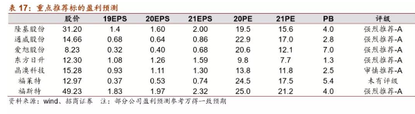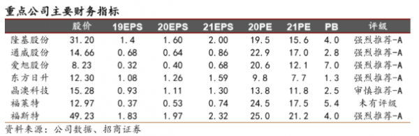 重点推荐:隆基股份、通威股份、爱旭股份、东方日升、晶澳科技、福莱特、福斯特。