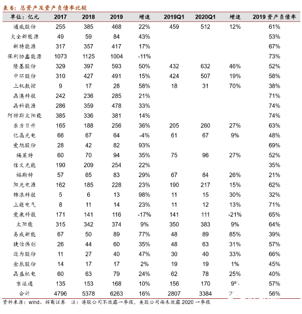 2019年光伏上市公司总资产6263亿元,同比增长16%。2019年27家上市公司总资产6263亿元,总负债3896亿元,光伏企业中资产规模最大的是保利协鑫1004亿元,最小的是刚上市的锦浪科技13亿元。