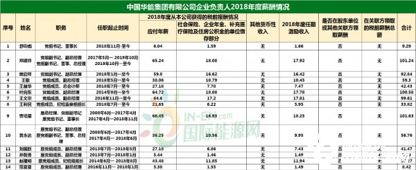 另外,12位一把手中,2018年度收入最低的为华能集团党组书记、董事长舒印彪,合计金额仅为9.29万元。但需要注意的是,舒印彪在2018年11月份才出任华能集团董事长一职,所以相当于只统计了不到2个月的工资。而如果算上其此前任职国家电网公司董事长时的薪酬114.26万元,其2018年实际收入为123.57万元,甚至比现任国家电网公司董事长寇伟还要高。
