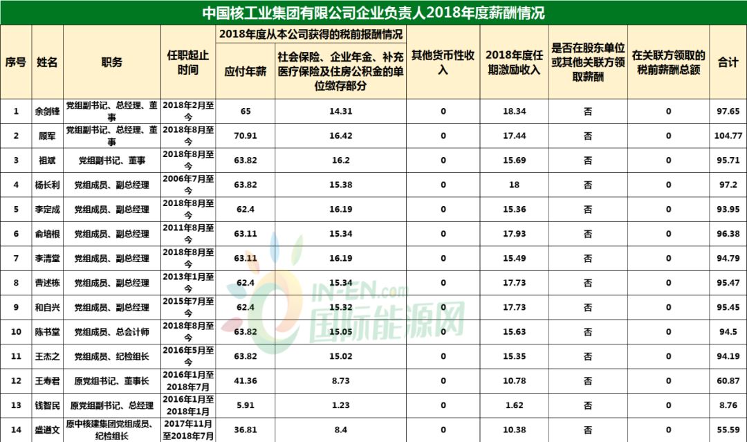 1999年7月1日,在国家原五大行政性军工总公司基础上重组十大军工集团,中国核工业集团公司成立,是国家战略核力量的核心和国家核能发展与核电建设的主力军,曾实现中国大陆核电“零的突破”的辉煌历程。但是,其2018年度高管薪酬情况却让人有些云里雾。曾在2018年7月前任董事长的王寿君2018年薪酬合计仅为60.87万元,