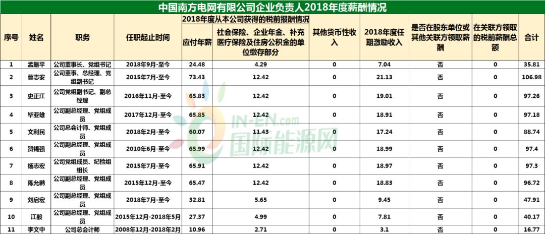此外,南网公司党组书记、董事长孟振平,也是从2018年9月才出任南网董事长一职,所以其2018年全年收入应为107.89(此前为国电投总经理)。
