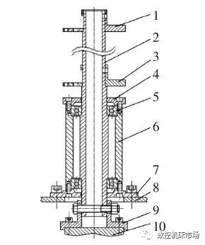 6.轴承套筒 7.下轴承端盖 8.风机支架 9.联轴器 10.发电机