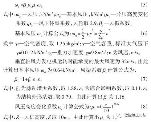 所以计算出风压 ωk为 2.159kN/m2。叶片受到的最大风载荷为 2418N。所以垂直轴风力发电机主轴上、下轮辐连接处受径向力为 1209N。