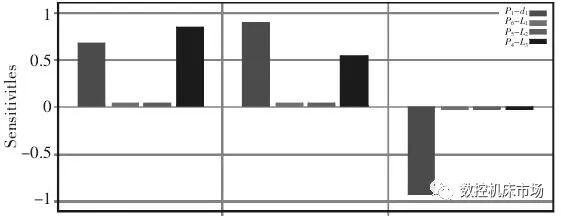 风机工作时,主轴的扰度决定轮辐和叶片旋转时的偏心距,所以在满足垂直轴风力发电机主轴强度的条件下,主轴上端的最大横向位移必须小于设计的扰度。该垂直轴风力发电机主轴设计的最大位移<0.2mm、最大等效应力<15 MPa。对主轴静力学分析结果进行后处理,读取主轴的质量、最大位移,最大等效应力;打开目标驱动设计模块。设置风机主轴设计变量的上、下取值极限(如表 1),选择优化方法为 Screening,初始样本数为 500 个。以质量最小为目标函数,设置约束条件为最大位移<0.2mm、最大等效应力<15 MPa。进行优化计算,得到最优设计样本。设计变量对质量、最大位移、最大应力灵敏度直方图,如图 6 所示。由图 6 可以看出内径 d 对主轴位移、应力、质量有十分显著的影响;轮辐跨径L3对主轴位移、应力有显著的影响。支撑跨径 L1和下轮辐到上支承的距离 L2对主轴位移、应力、质量的影响较小。