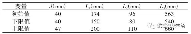 表 1 设计变量初始数据