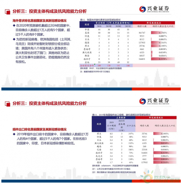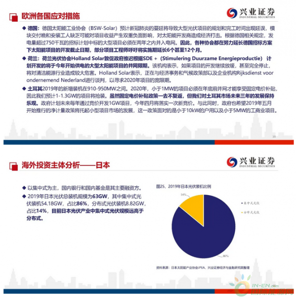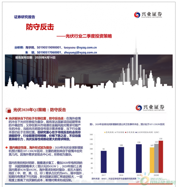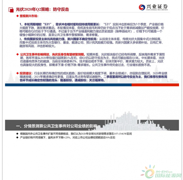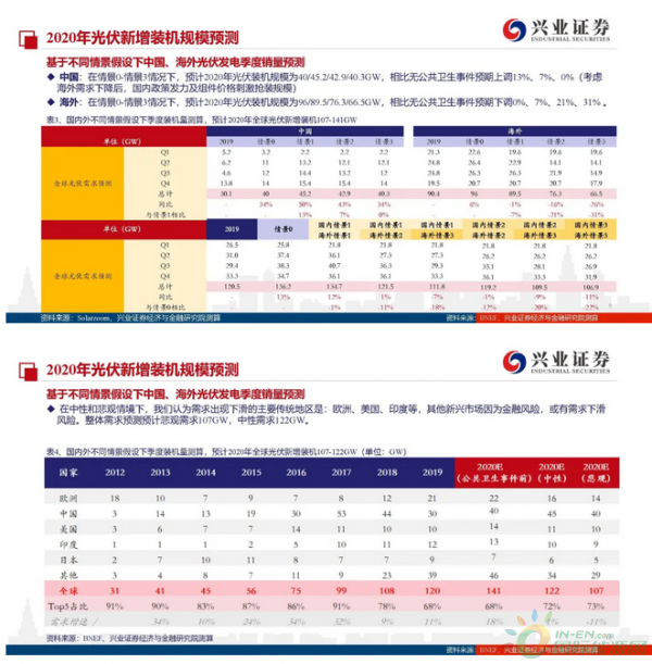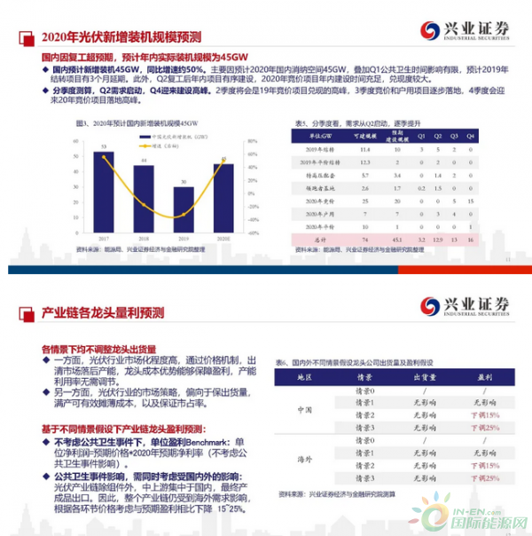 国内确定性强,海外形式较为复杂:2020年光伏全球新增装机预计落在107-130GW区间,主要的差别来自于公共卫生事件冲击究竟几何。因海外需求呈现去中心化,形势较为复杂。