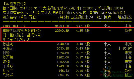 海润光伏最新股东列表显示,公司拥有25.38万个股东,户均持股1.86万股。前十大流通自然人股东,从持股694万股到2043万股不等,但可以肯定的是,绝大部分股票仍是散户所持有。值得注意的是,其二股东重庆信托·鑫润12号集合资金信托计划于2017年一季度最新入驻,持有海润光伏2.29亿股,占总股本的4.85%。