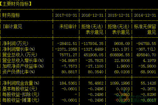 2016年巨亏近12亿元年报被出具“非标”意见