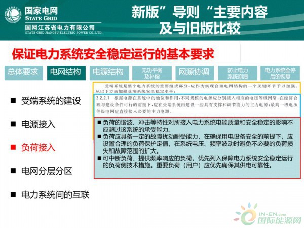 “负荷接入”部分为新增内容,共3点,分别对电力系统对负荷的要求、负荷对电力系统的适应性,以及可中断负荷等需求侧响应技术应用3个方面做出了规定。