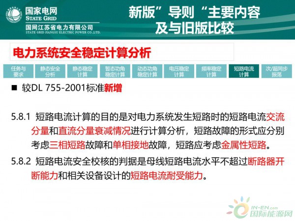 较之于旧版,5.1.1条对稳定系统研究内容进行了进一步的细化,提出了频率稳定、短路电流计算、次/超同步振荡等新要求。
