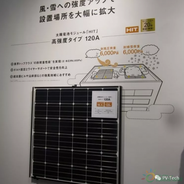 日本对向屋顶市场的转型期待已久。图为2017东京光伏展上展出的高楼专用松下HIT组件。