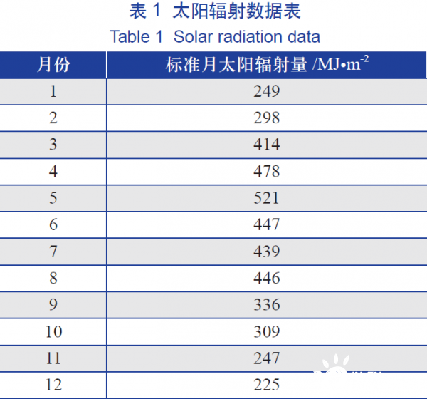 本文以某光伏发电系统为计算实例进行分析。该光伏发电系统所在地的地理坐标为37°08′N、140°09′E,海拔高程为540 m,该地的太阳辐射资料如表1 所示。