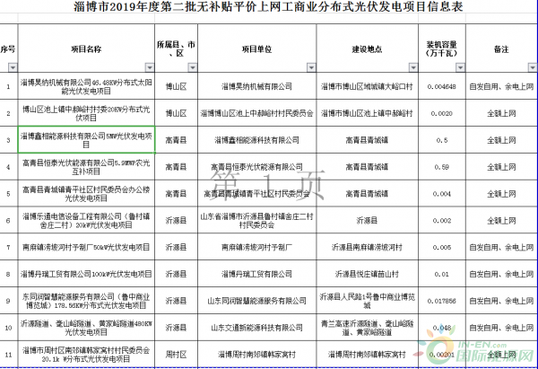 关于淄博市2019年度第二批光伏平价上网项目的公示