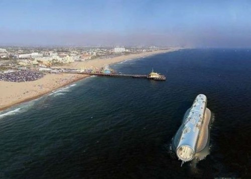 它的底部与海底高压电缆和水管相连,电力和饮用水就通过这些回到城市。
