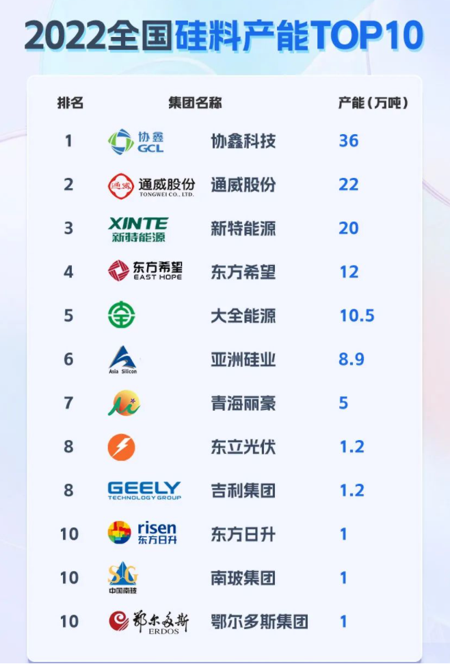 图1:2022年硅料产能排名TOP10