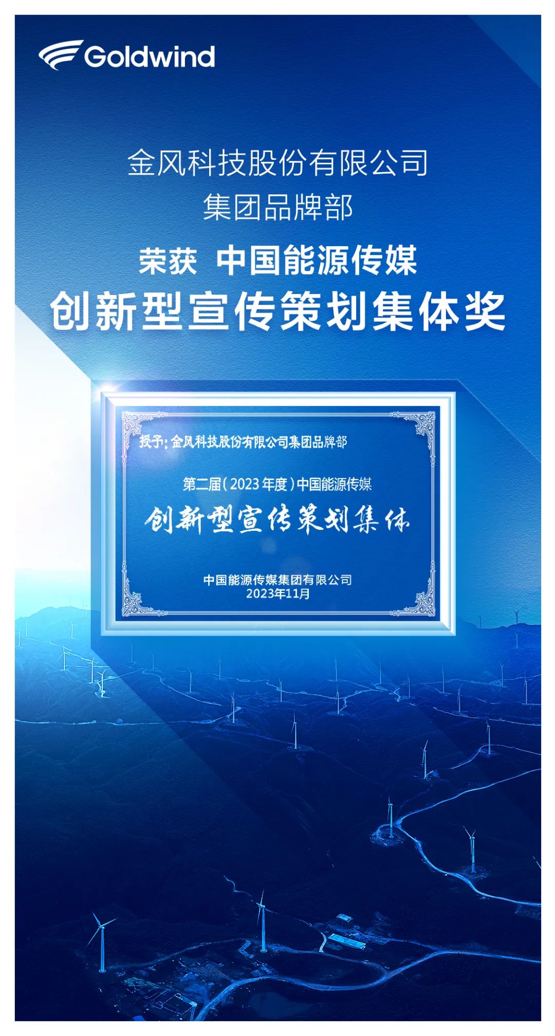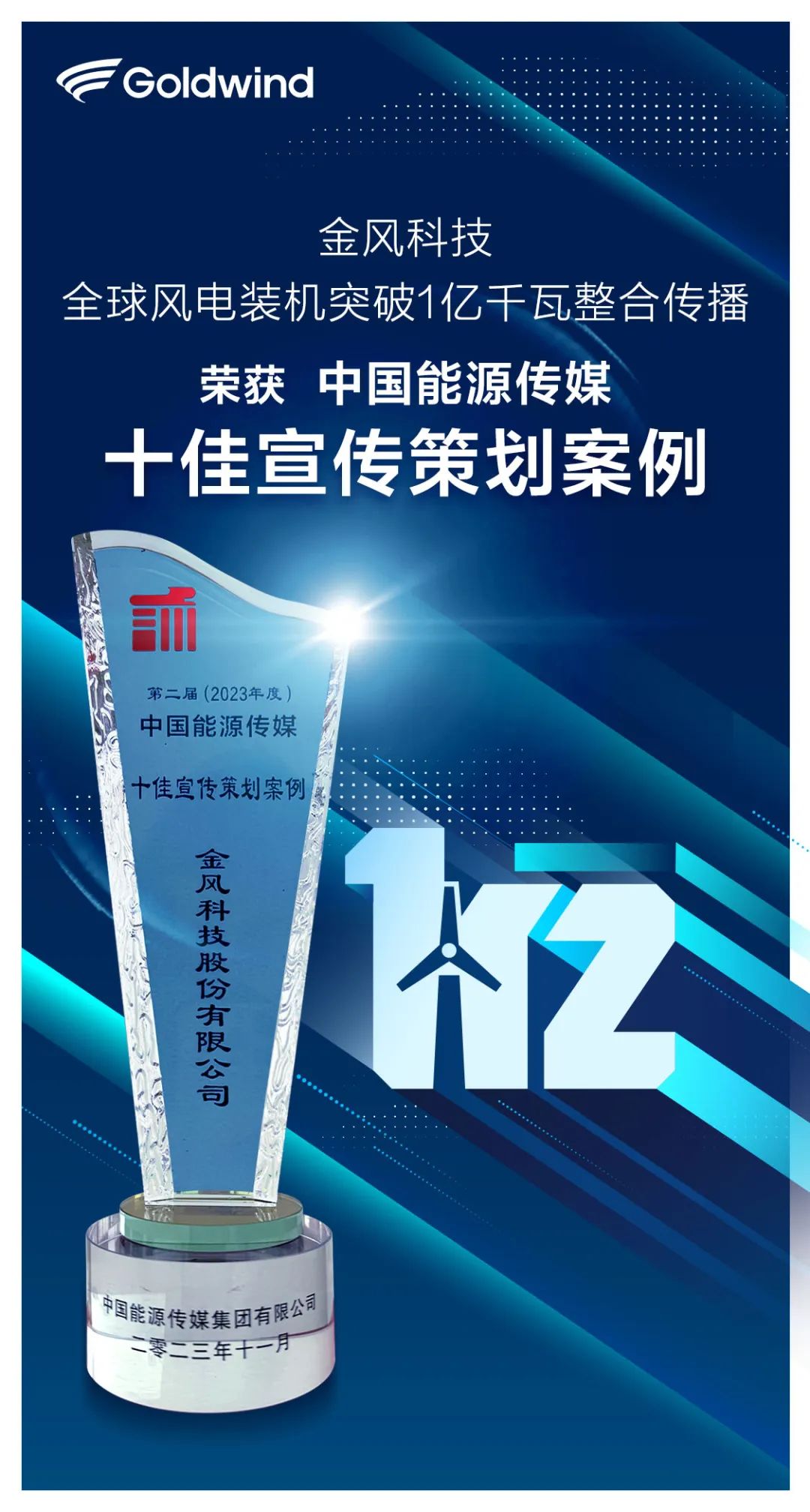 近日,由国家能源局主管的中国能源传媒集团主办的“第二届中国能源传媒优秀宣传策划案例展评活动”结果公布,金风科技荣获两项大奖。“金风科技全球风电装机突破1亿千瓦整合传播”获评“中国能源传媒十佳宣传策划案例”,金风科技集团品牌部获评“中国能源传媒创新型宣传策划集体奖”。