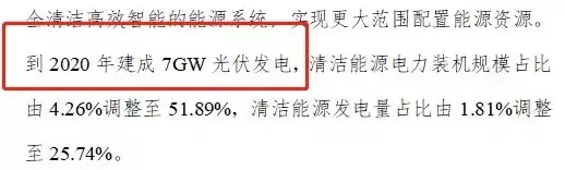 根据最新发布的《师市清洁能源替代攻坚行动方案》(师市就是石河子市),提出到2020年底建成7GW光伏发电(文件特别指出是新增),清洁能源电力装机规模占比由4.26%调整至51.89%,清洁能源发电量占比由1.81%调整至25.74%。