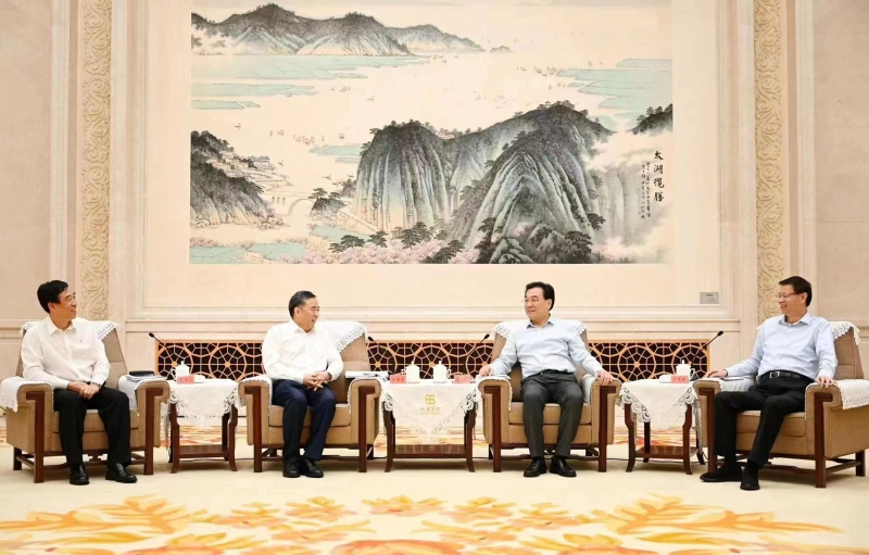 6月25日,中国能建党委书记、董事长宋海良,党委副书记、总经理孙洪水一行在南京拜会江苏省委书记信长星,省委副书记、省长许昆林。双方就深化新能源、综合储能系统、氢能一体化运用网络、城市更新等领域合作进行交流,并签署战略合作协议。