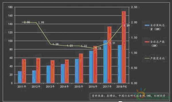 图 1 全球光伏产能相对过剩,绝对短缺