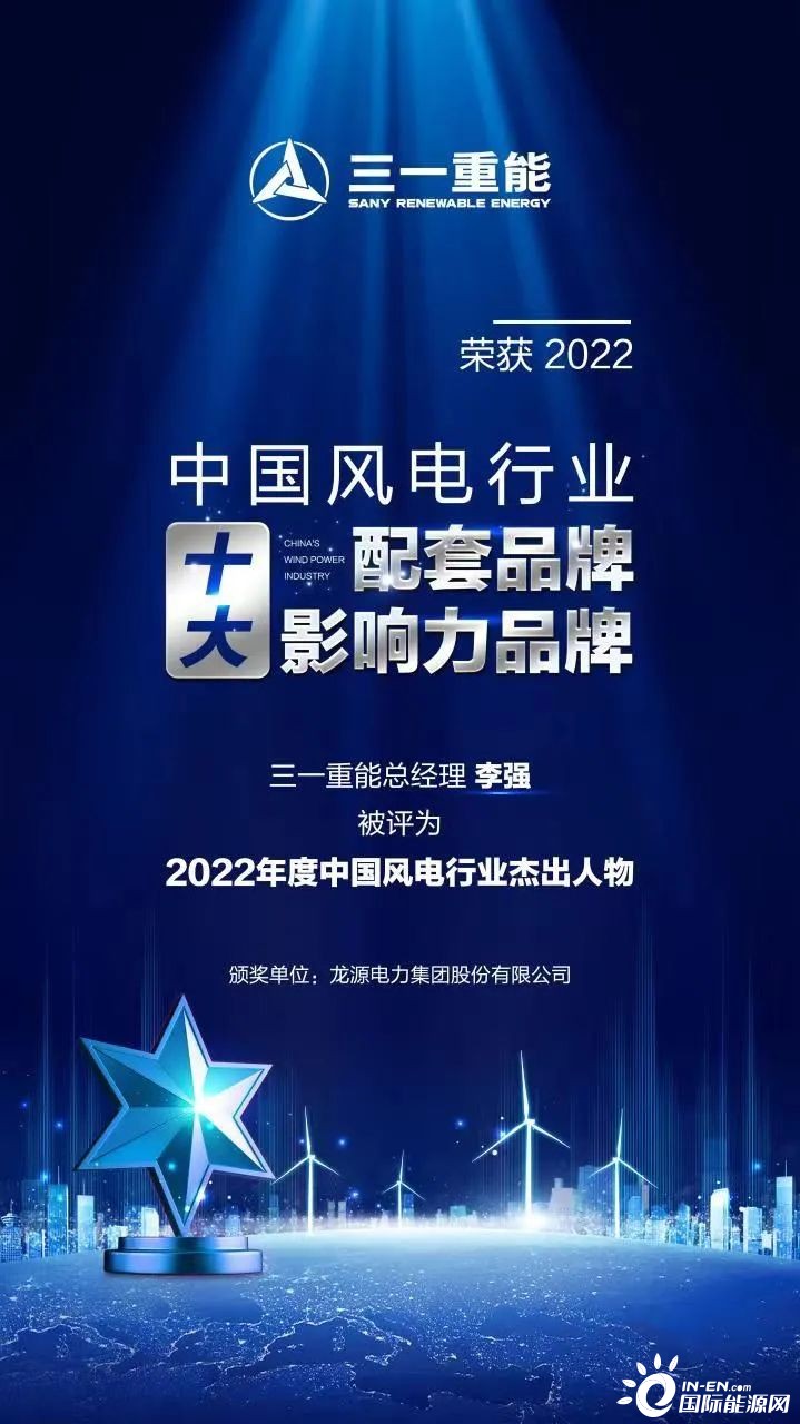 9月5日,2022年中国电动生态展览会在南京举行,三一重能携大兆瓦风机技术及数字化风电解决方案亮相此次盛会。期间,在首届风电设备及配套产品颁奖典礼上,三一重能荣膺“2022年度中国风电行业十大影响力品牌”“2022年度中国风电行业十大配套品牌”,总经理李强被评为“2022年度中国风电行业杰出人物”。