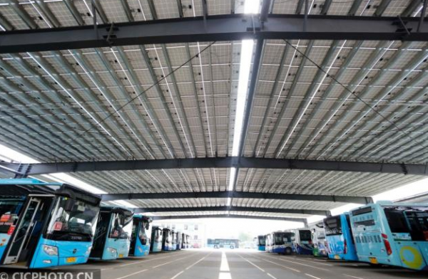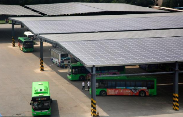 山东泰安公交公司利用公交停车场车棚顶部空间铺设太阳能板,太阳能发电不仅能满足纯电动公交车的充电使用,多余电量还能进入国家电网。公交企业通过建设光伏发电,形成了“自发自用,余电上网”的新模式。