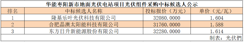 3、中广汇能3GW光伏组件集采5月份3.089GW光伏组件开标情况如下
