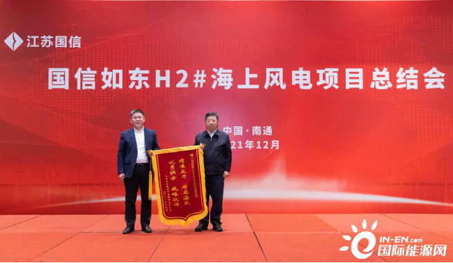 12月28日,国信如东H2#海上风电项目总结会在南通举行,中国海装党委委员陈德春从国信集团副总经理、新能源公司董事长徐国群手中接过锦旗,并在活动致辞中表示,面对双碳目标指引下快速发展的海上风电市场,以国信集团为代表的大型央企和地方国有企业,在进入海上平价的历史关口,交上了一份完美的答卷。中国海装愿为各开发企业提供更多更优质的产品和服务,为我国海上风电的事业作出更大贡献!