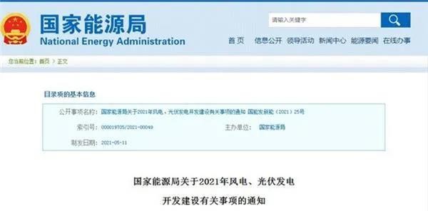 5月20日,国家能源局下发《关于2021年风电、光伏发电开发建设有关事项的通知》(下称《通知》)明确,各省份完成年度非水电最低消纳责任权重所必需的新增并网项目,由电网企业实行保障性并网,2021年保障性并网规模不低于90GW。