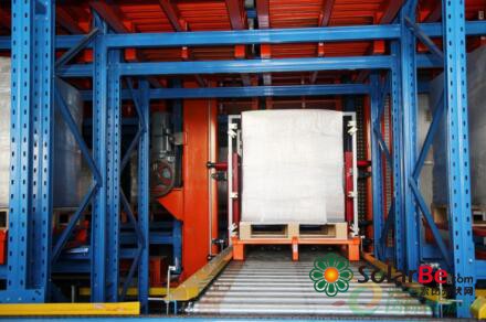 位于苏州协鑫光伏西厂区的智能仓储占地面积700余平方米,3层12排式货架,托盘货位828个,比原先扩容了45%,货架最高处达6.8米,由AGV叉车、自动传输带、RGV搬运车、双向巷道堆垛机等智能设备组成,配合先进软件系统,无需人工介入操作即可实现24小时出/入库。