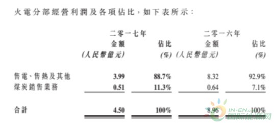 由于煤炭价格上涨,即使公司在2017年火电分部取得79.9亿元的营业收入,同比增长9.9%,但火电分部的经营利润却仅有4.5亿元,同比下降49.78%。