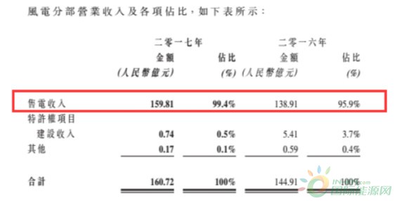 2017年公司风电分部营业收入为160.72亿元,同比增长10.9%,其中风电售收入159.81亿元,同比增长15.12%。