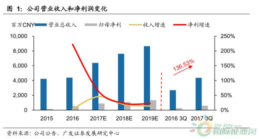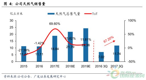 公司2017年前三季度共实现收入43.41亿元人民币,同比大幅增长62.16%。与此同时,公司实现净利润为5.93亿元人民币,同比增长136.53%。公司收入增长主要是由风电业务和燃气业务带来的贡献,三季度风电发电量超出预期,燃气零售业务表现突出,我们预计四季度随着供暖需求增加,天然气业务有望驱动盈利持续增长。