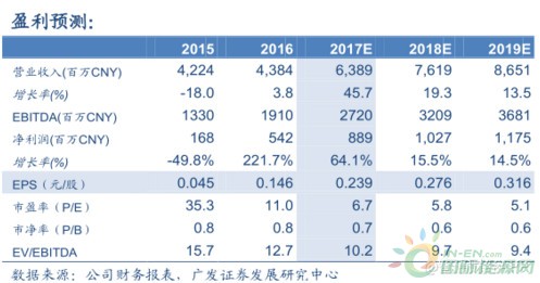 2017年12月15日,新天绿色能源(0956.HK)收盘价为1.96港币,我们预测公司2017-2019年EPS分别为人民币0.239、0.276、0.316元,对应PE为6.7X、5.8X、5.1X,处于较低水平,维持“买入”评级。