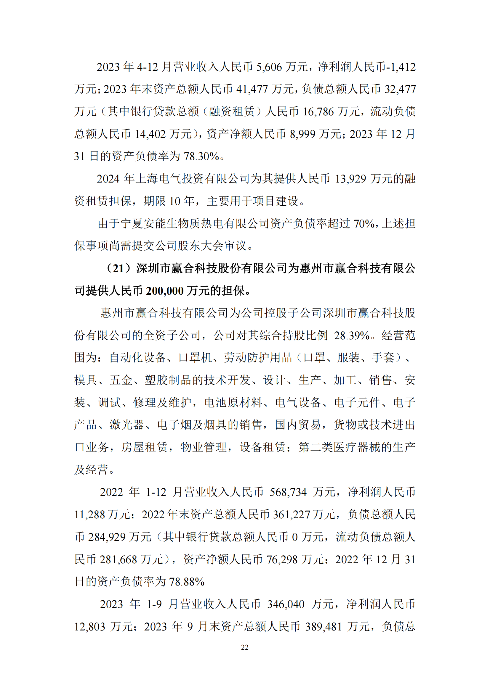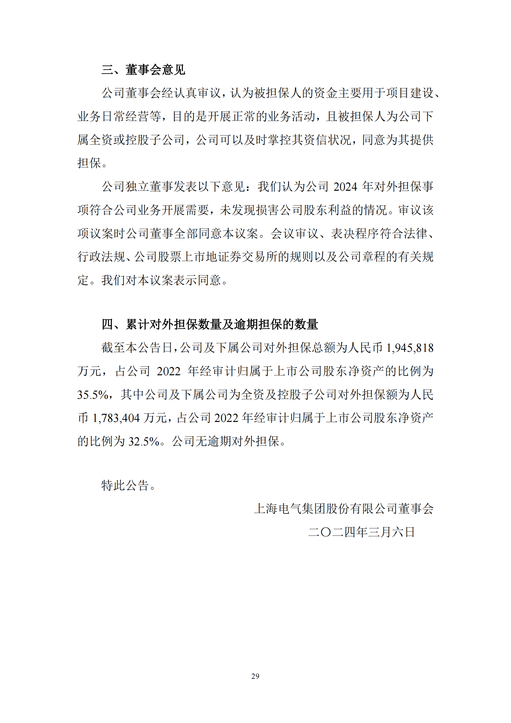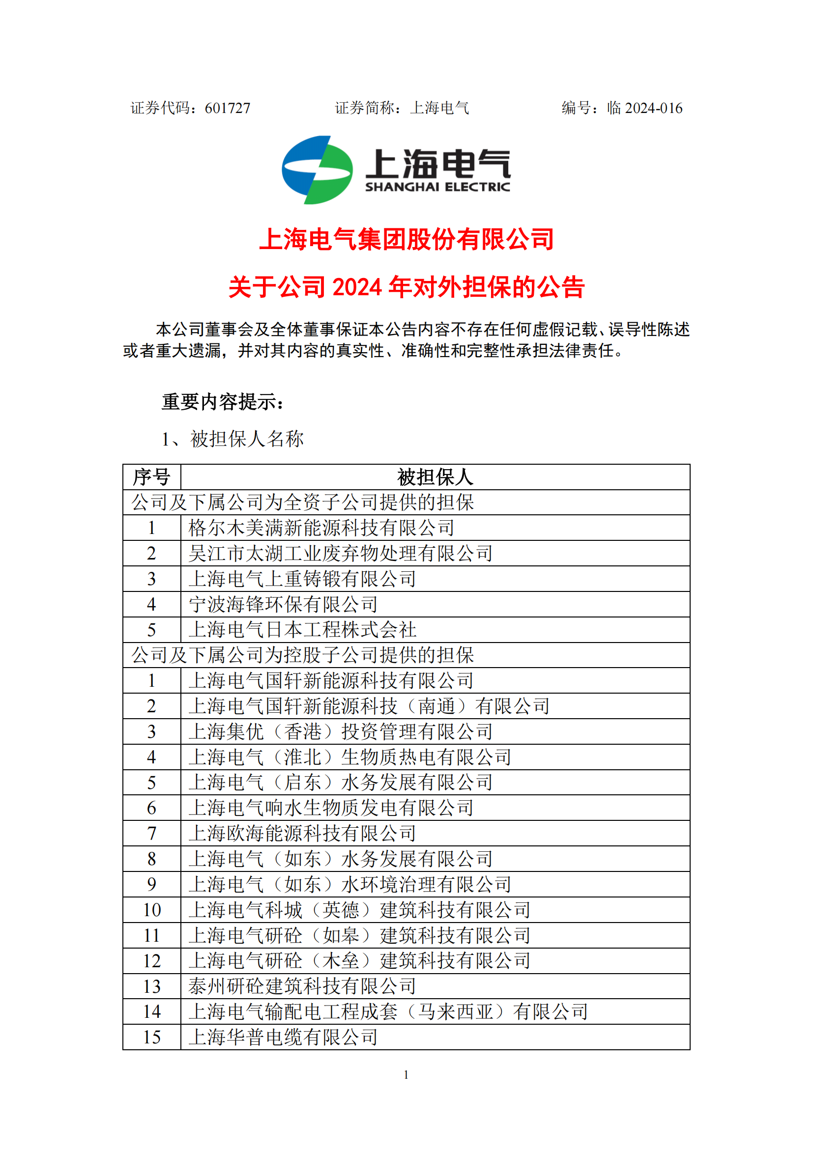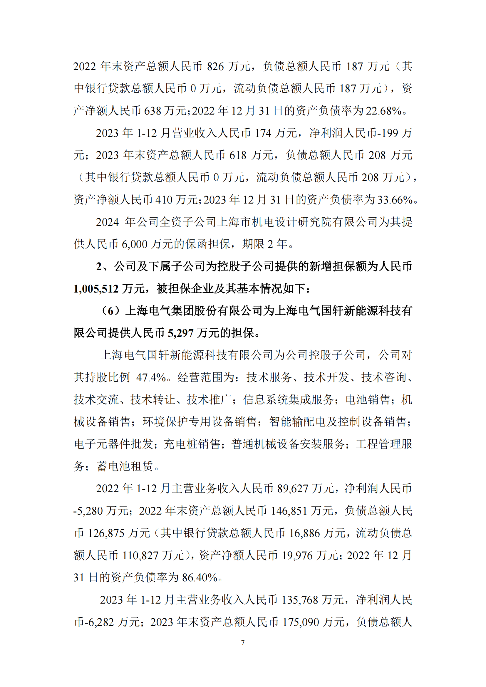 国际能源网获悉,3月7日,上海电气集团股份有限公司(简称:上海电气)发布关于公司2024年对外担保的公告。