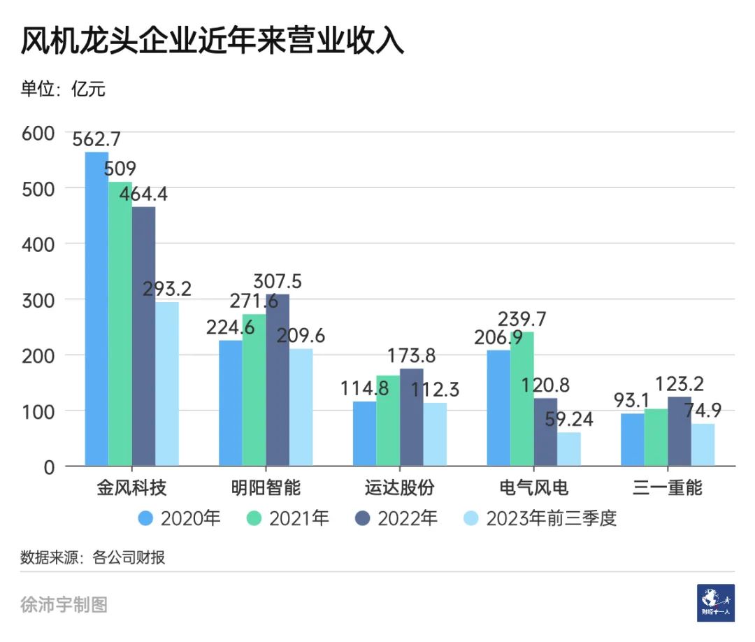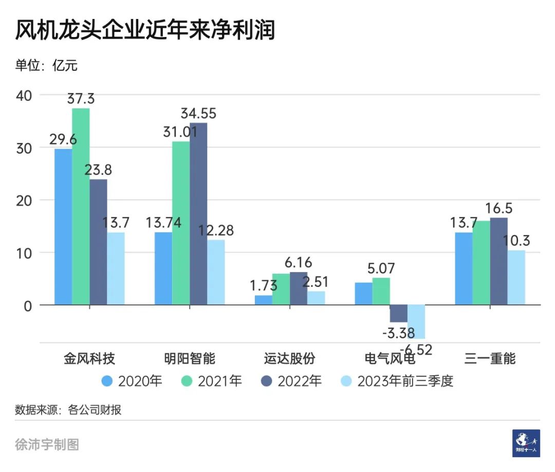 2023年前三季度,金风科技、明阳智能、运达股份、电气风电和三一重能五大风电整机商净利润全面下滑,一家公司甚至出现了亏损。