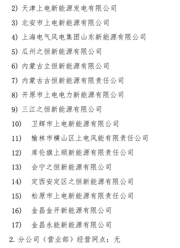 上海之恒新能源主要负责上海电气风电集团对外新能源项目开发和投资。分支机构包括多个遍布陕西、天津、内蒙古等地的风电开发公司。