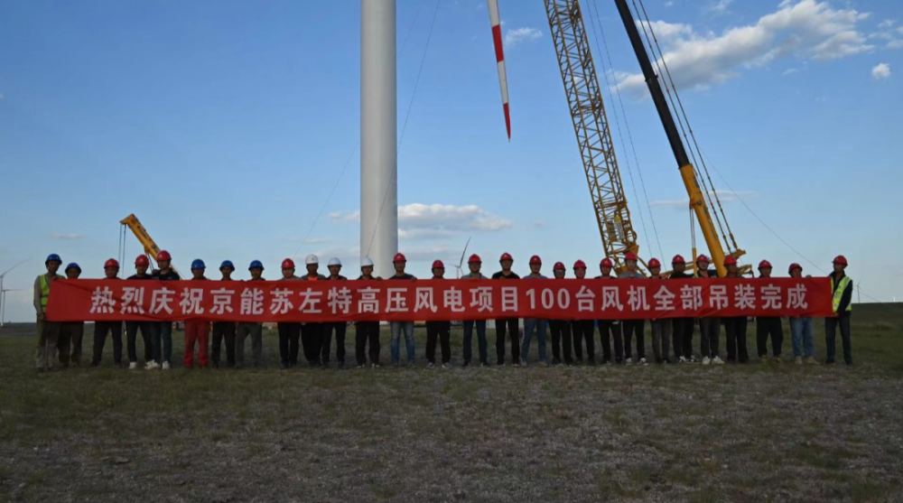 据了解,该项目是锡盟特高压外送二期400万千瓦风光储基地配套项目,属于国家第一批“以沙漠、戈壁、荒漠地区为重点的大型风电光伏基地”建设项目,总投资35亿元。项目风机于2022年8月开始吊装,2023年7月29日100台风机均已吊装完成。目前项目已完成投资15.18亿元,预计9月并网发电。